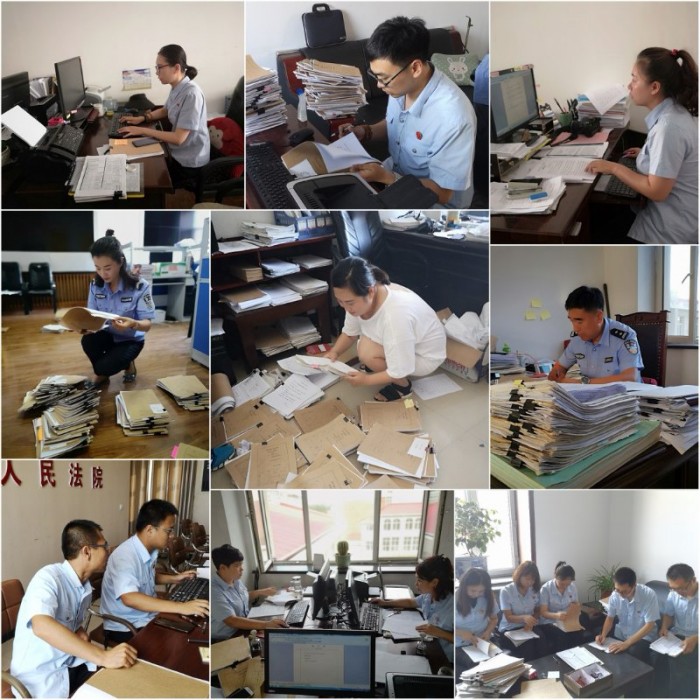 “执行难”是社会各界关注的焦点,也是困扰法院工作的难点。为破解执行难问题,加快实现决胜“基本解决执行难”工作目标,提高执行案件卷宗质量,龙江法院党组高度重视,举全院之力,调动各业务庭干警30余人由各分管院领导带队,通力配合、分工明确、各司其职进行审核材料、查缺补漏、整理卷宗等工作。法院全体干警不分昼夜加班加点工作,每天工作至晚10半以后,有的干警甚至在通宵加班。